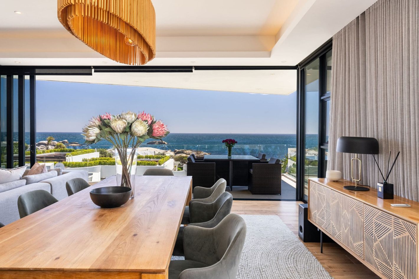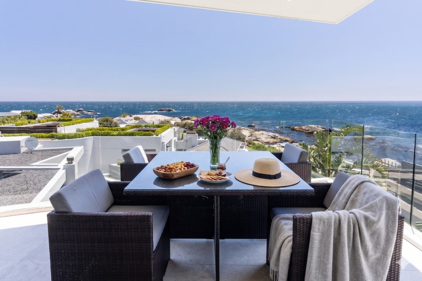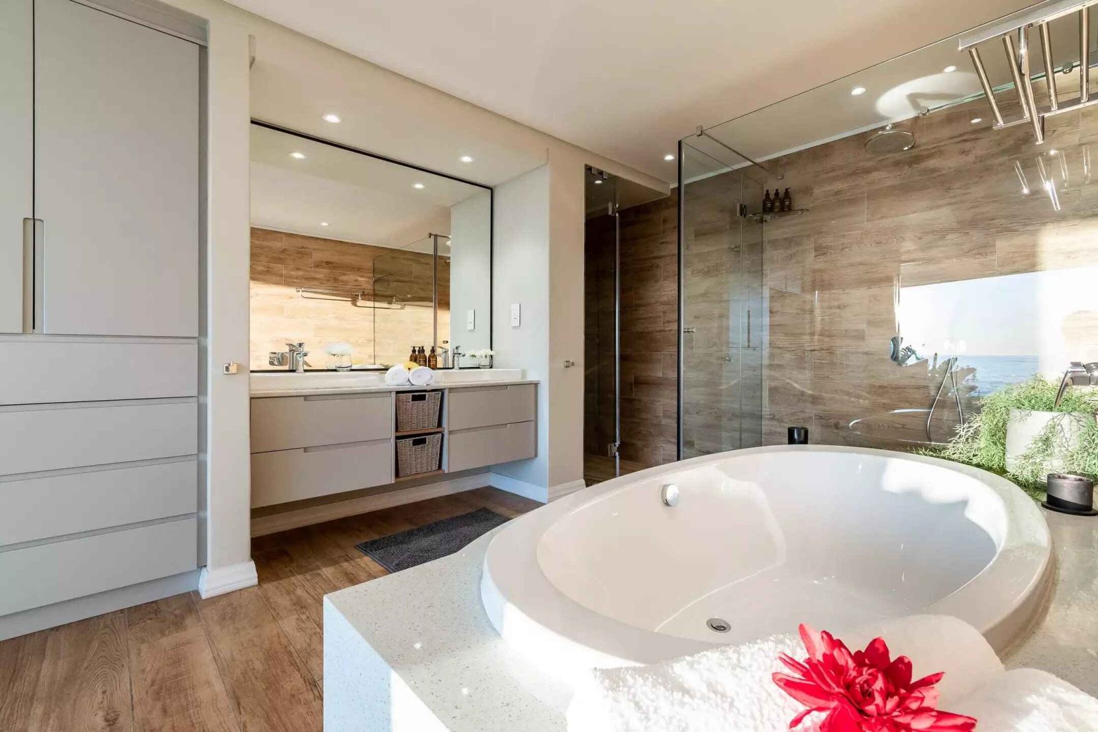 This exquisite luxury villa rental in Cape Town, is a breathtaking retreat perfectly positioned in the affluent suburb of Bakoven. Designed for discerning families and groups, this Cape Town holiday home offers outstanding Atlantic Ocean views and an abundance of space, ensuring a private and comfortable stay. With three distinct levels and backup power from inverters, this is the ideal base for a truly seamless Cape Town holiday.