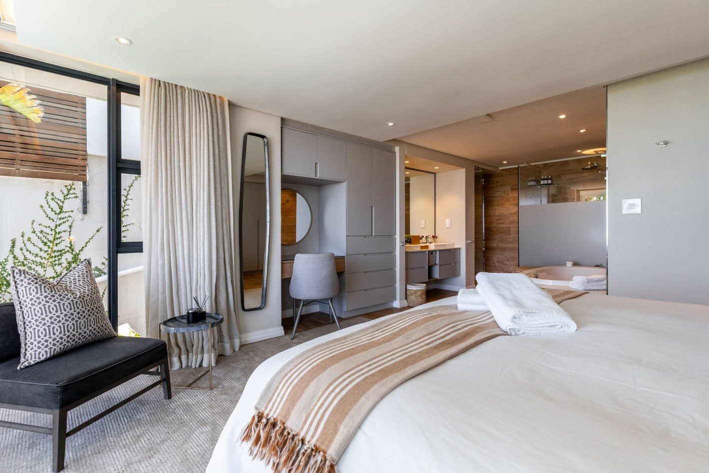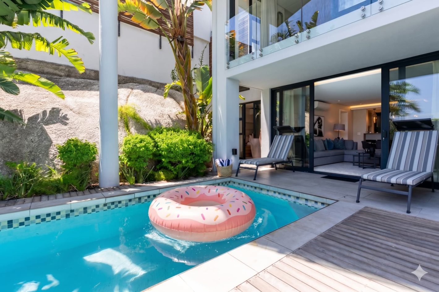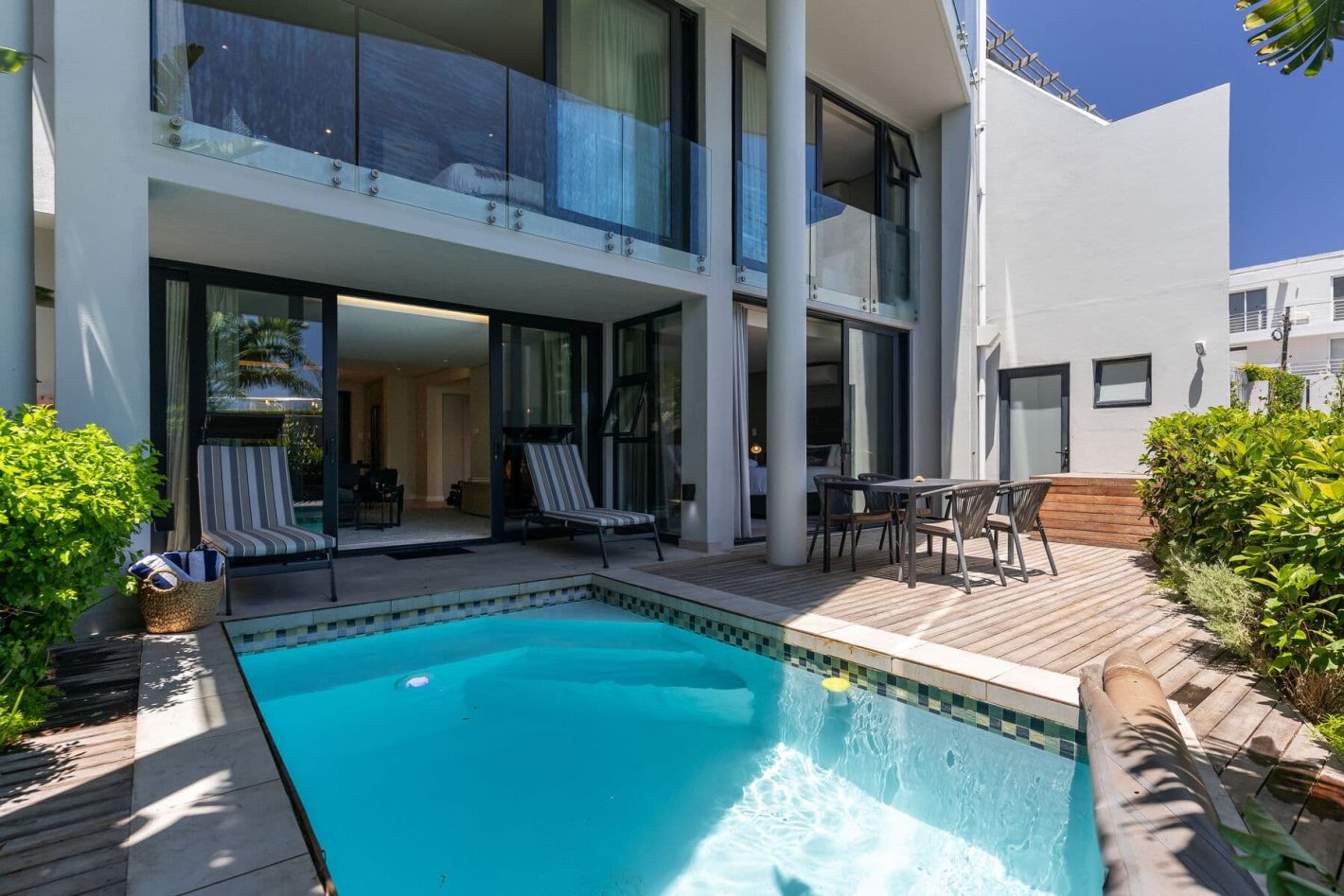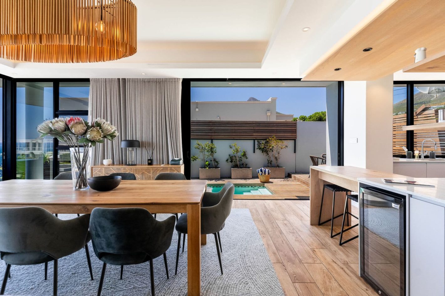 Located just a 10-minute walk from the vibrant Camps Bay beachfront, you have easy access to a selection of renowned restaurants and trendy cafes, all set against the dramatic backdrop of the Twelve Apostles mountains. The villa’s prime location also ensures that you are just a short drive from iconic coastal attractions like the pristine Llandudno Beach, the world-famous Chapman’s Peak Drive, and the majestic Table Mountain, making this the perfect choice for a luxury, no-fuss escape.