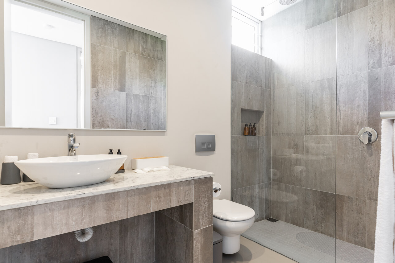 The home comfortably accommodates guests across four very spacious bedrooms. The master suite is a true standout, offering two private patios and a walk-in closet. One bedroom is conveniently located on the first floor with its own patio and ocean views, while three more en-suite bedrooms are located on the second floor. Two of the upstairs rooms also boast direct ocean views and connect to a generous outdoor terrace.