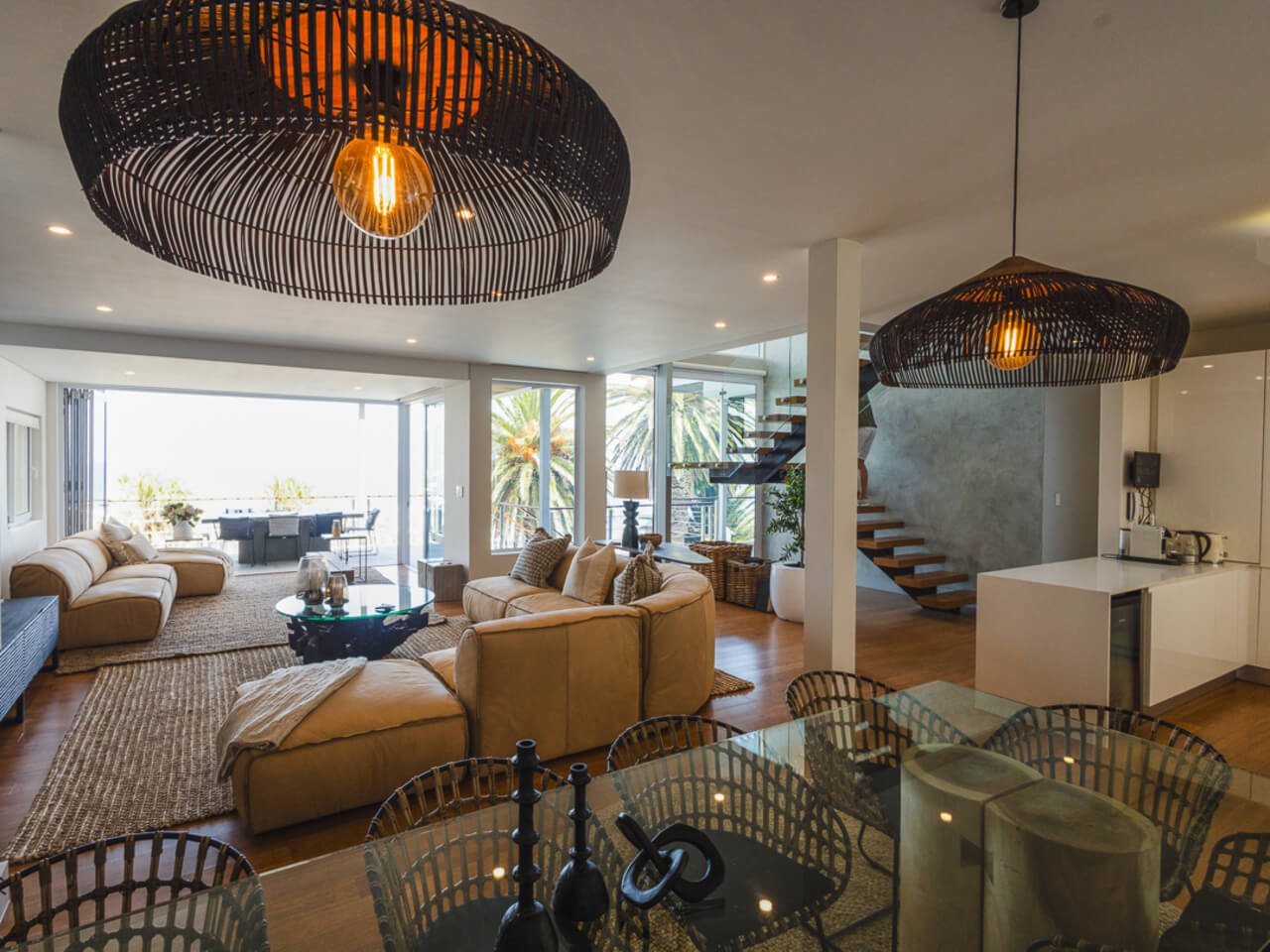 Welcome to your ultimate Camps Bay luxury villa, where panoramic views of the Atlantic Ocean and the majestic Twelve Apostles mountain range form your daily backdrop. This spacious, meticulously maintained home is furnished with new, modern designer pieces and includes daily housekeeping, ensuring a pristine and unforgettable Cape Town vacation.