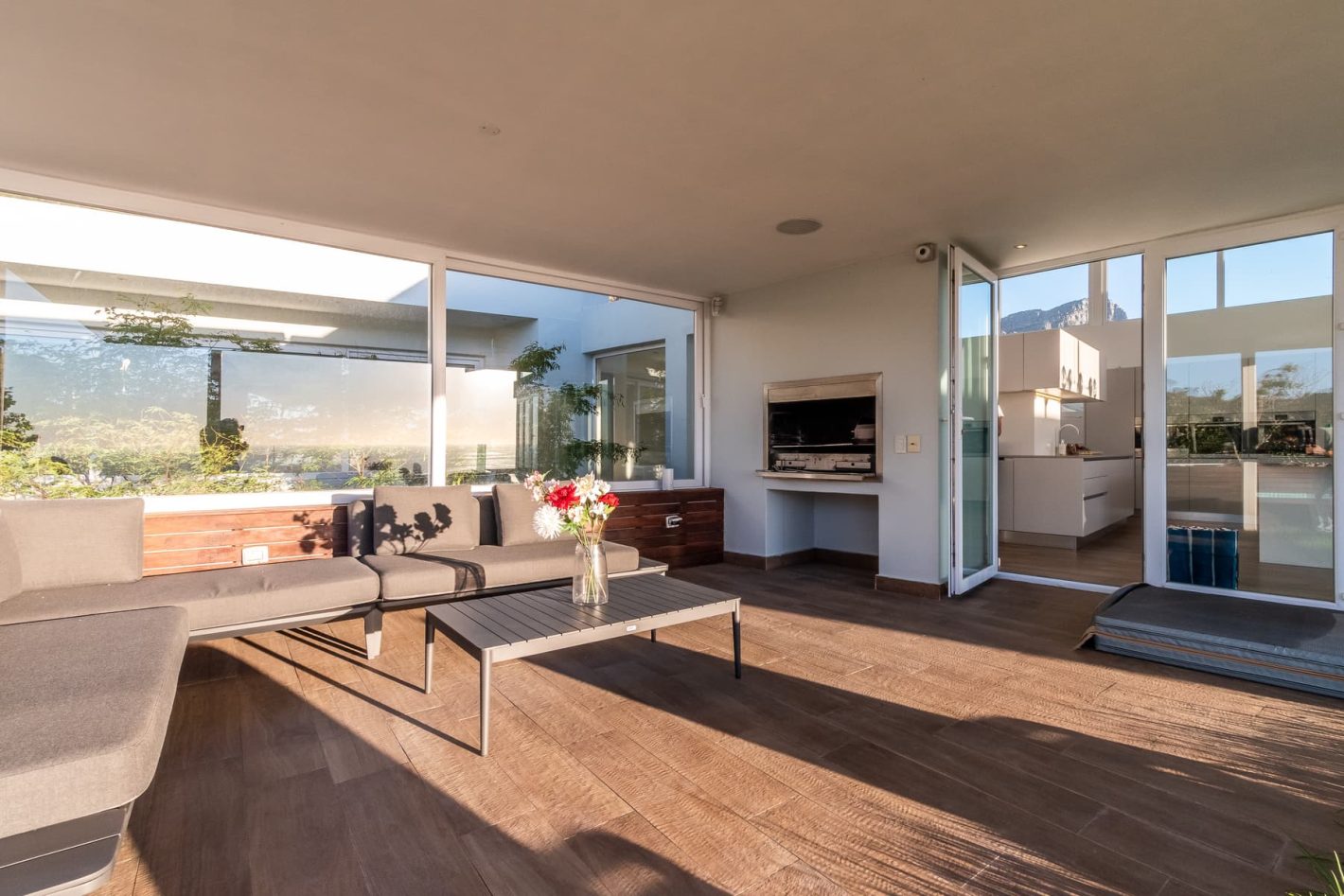 Arrive in ultimate style via the private elevator that whisks you from the garage directly to the main third-floor penthouse level. The expansive, open-plan living space seamlessly connects to a state-of-the-art kitchen. This culinary haven is fully equipped with integrated appliances, including a central island gas hob, double ovens, and two refrigerators, alongside an eight-seater dining table. The living area is a true masterpiece of design: floor-to-ceiling glass doors retract completely, opening onto a generously sized private lawn, which is perfect for morning yoga, sun-drenched afternoons by the pool, or relaxing evenings. As dusk approaches, you are perfectly positioned to witness the world-famous, spectacular Camps Bay sunsets over the ocean.
